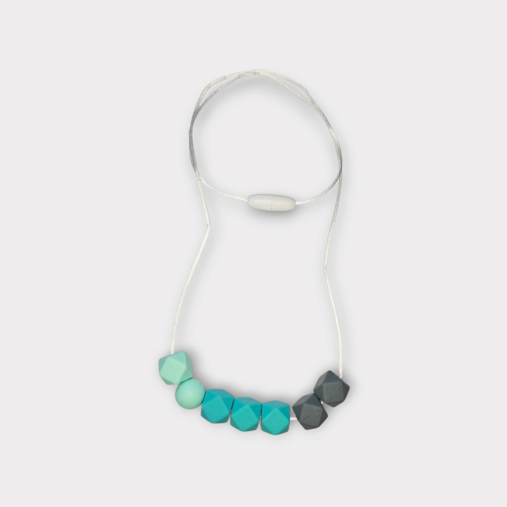O Tatá Colar Mordedor Turquesa combina estilo e funcionalidade de forma única, proporcionando alívio para o bebê durante a fase de dentição e um toque fashion para o look da mamãe.