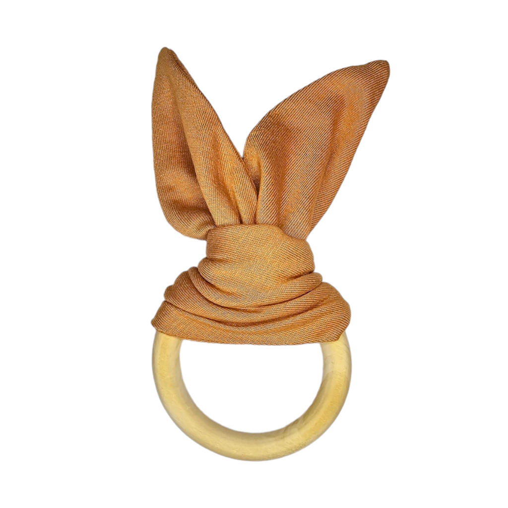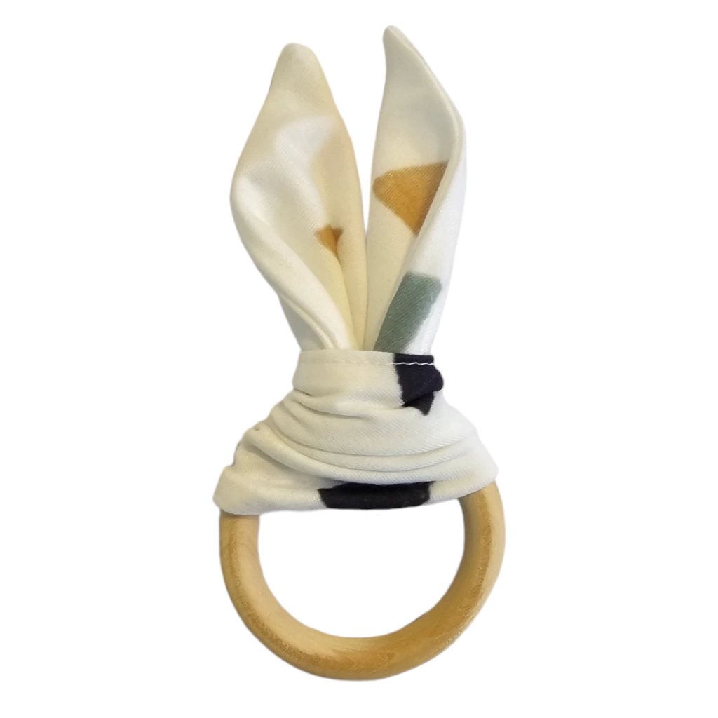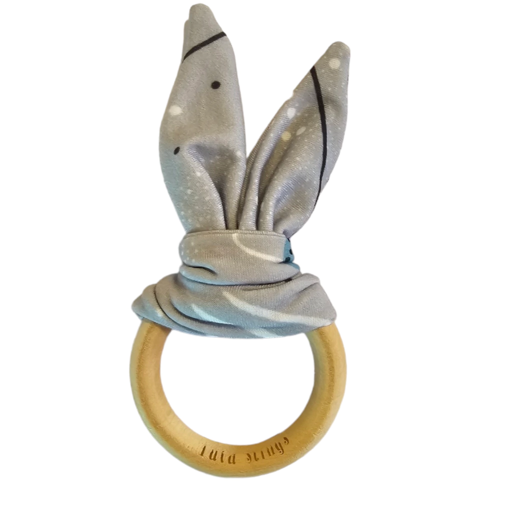 Mordedor de Bebê em Madeira Natural com Orelhinhas de Tecido – Linha TatáTessori